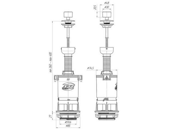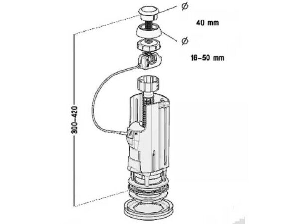 AlcaPlast huuhtelusäiliön sisäosa, 1-toiminen