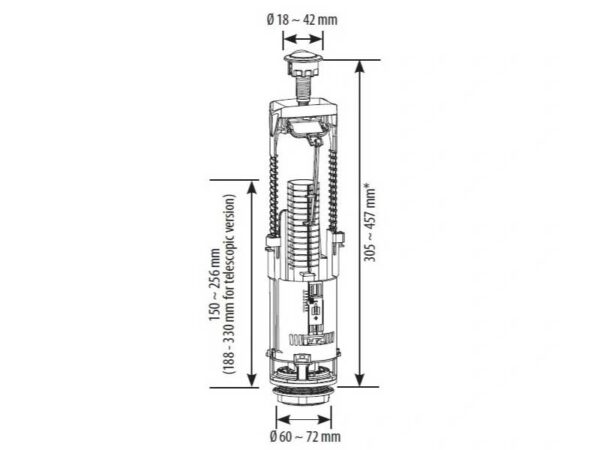 AlcaPlast huuhtelusäiliön sisäosa, 2-toiminen, 3/6 L
