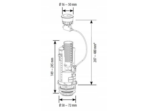 Huuhtelusäiliön huuhteluventtiili AlcaPlast 3/8″ pohja liitännällä.