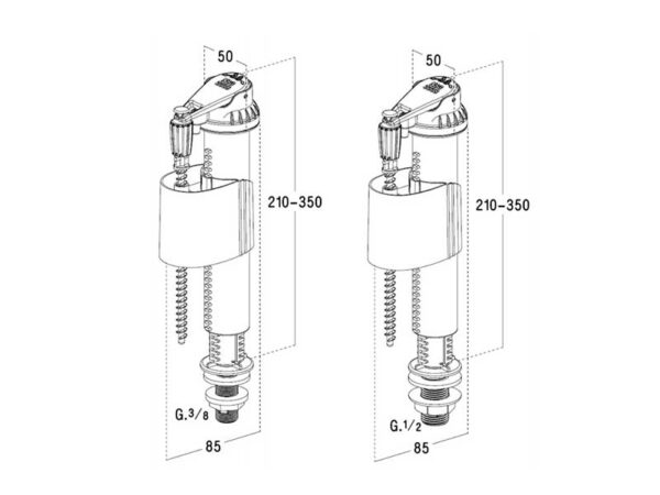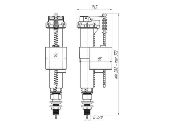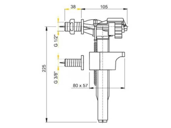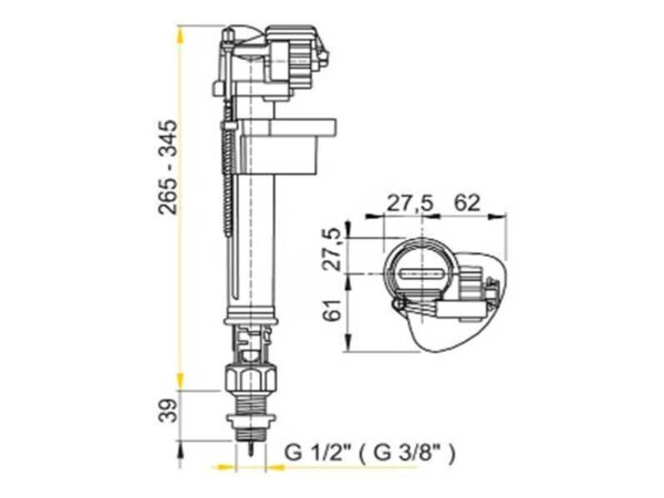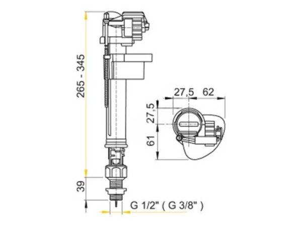 AlcaPlast-huuhtelusäiliön tuloventtiili 3/8″ sivuliitännällä.
