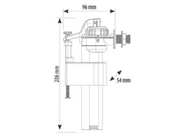 Huuhtelusäiliön tuloventtiili AlcaPlast 3/8″ sivuliitäntä (messinkikierre).