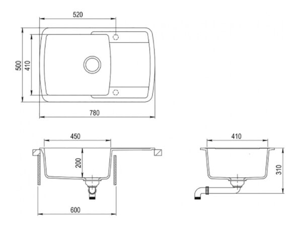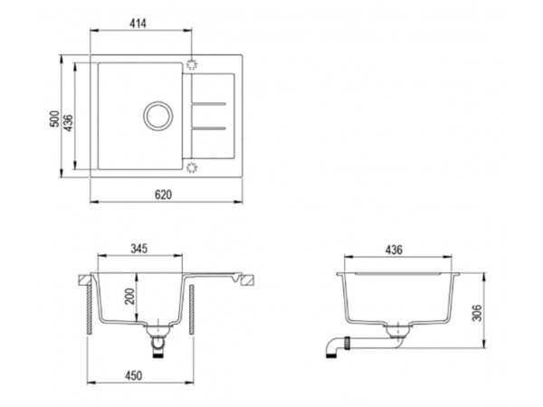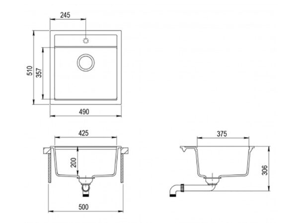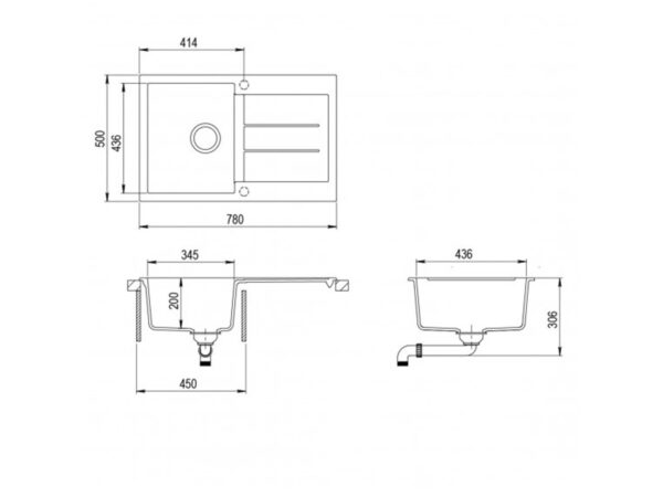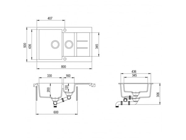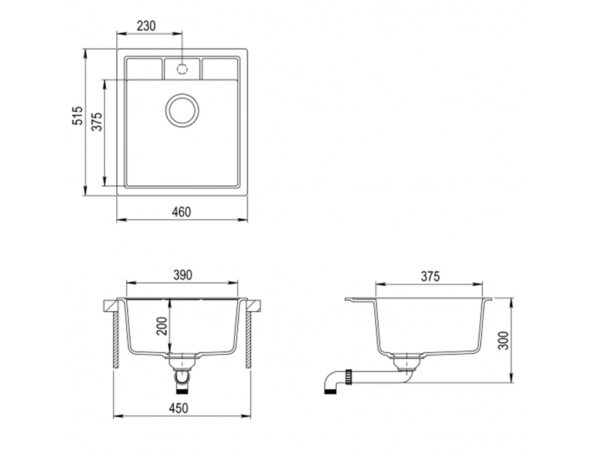 AquaSanita Tesa SQT151AW-keittiön pesuallas 80,0 x 50,0cm Väri: Musta metalliväri.