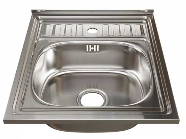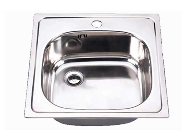 Ruostumattomasta teräksestä valmistettu pesuallas, jossa päällyslevy REN 50,0 x 50,0cm.