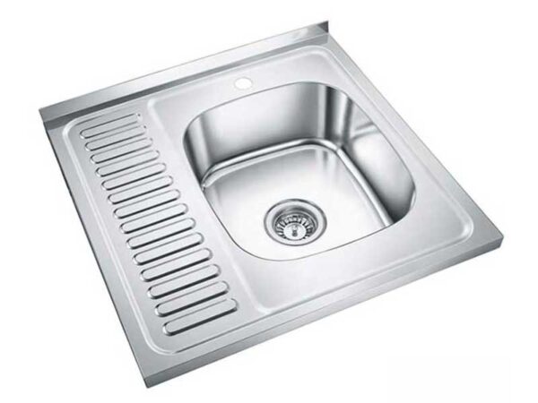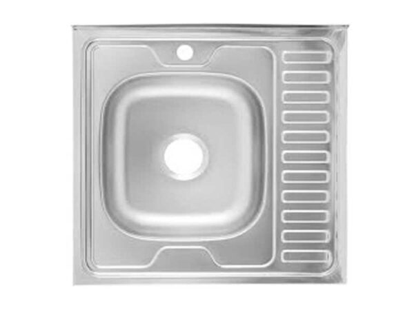 Ruostumaton satiininen allaslevy DUN 60,0 x 60,0cm , oikeanpuoleisella altaalla.