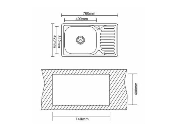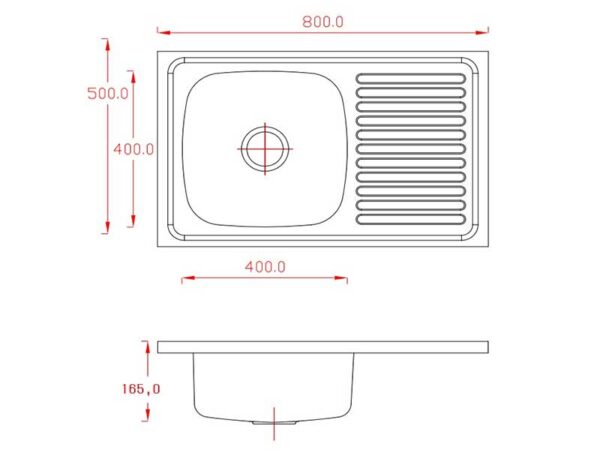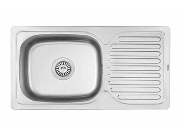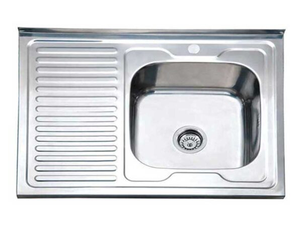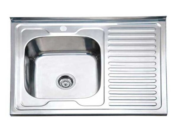 satiininen ruostumattomasta teräksestä valmistettu pesuallas DUN 80,0 x 50,0cm , oikeanpuoleisella pesualtaalla.
