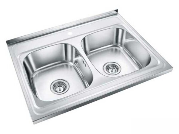 Ruostumattomasta teräksestä valmistettu pesuallas, jossa on ylhäältä asennettava DUN 80,0 x 60,0cm 2-ne.