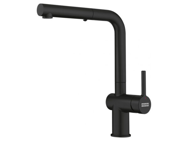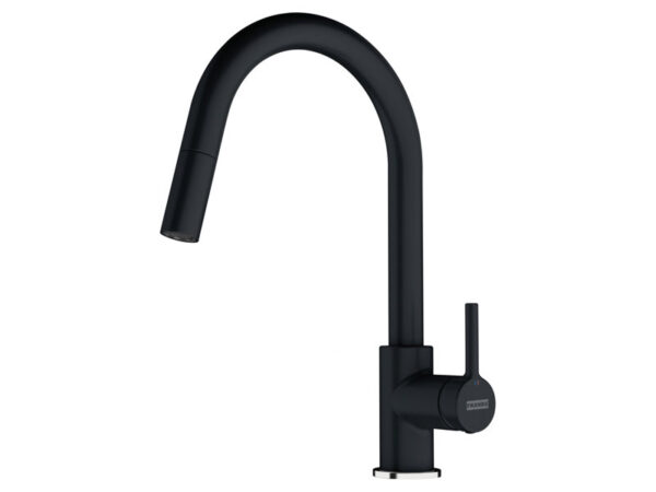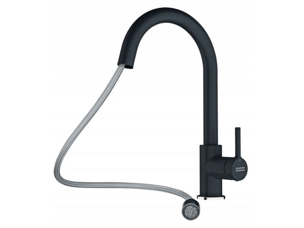 Franke Active Matt Black keittiöhana ulosvedettävällä suihkukaukalolla.