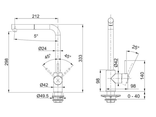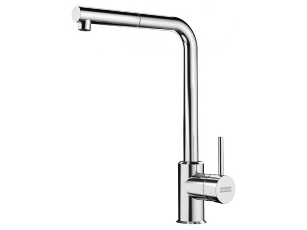 Franke Sirius L kromattu keittiöhana ulosvedettävällä suihkukaukalolla.