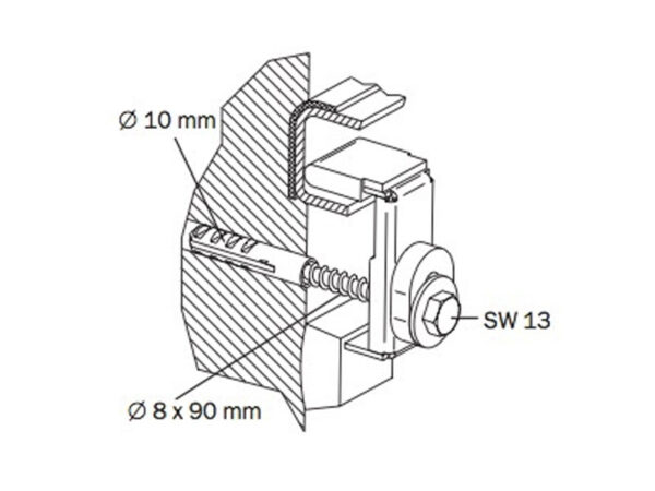 Suihkukaapit, joissa on puinen pohja, alumiininen seinäkiinnike