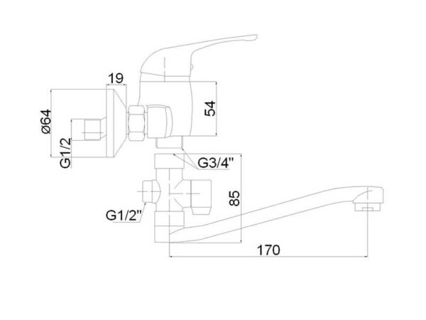 Kylpyammeen sekoittaja Magma Urans-35, jossa on 20 cm juoksuputki.