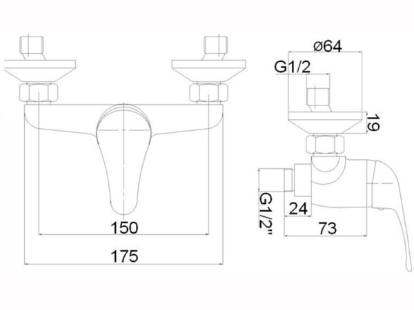 Kylpyhuonesekoitin Magma Jupits 20cm juoksuputkella.