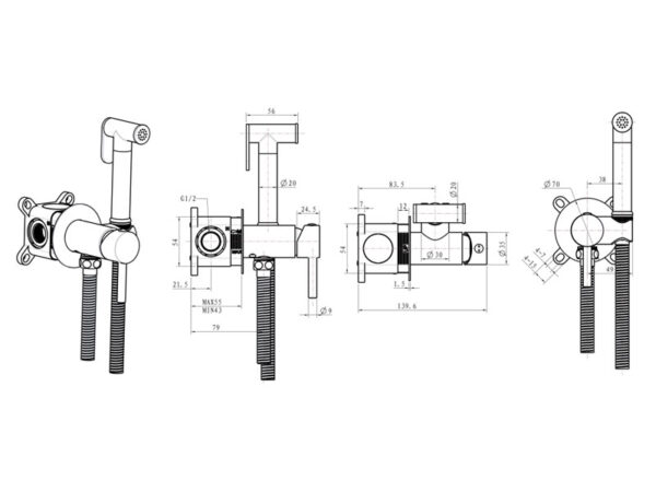 Kylpyhuonesekoitin Nordline DUNE 30cm juoksuputkella.