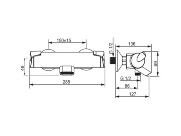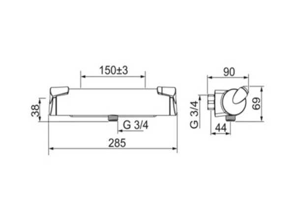 Oras Nova termostaatti/suihkusekoitinrunko 7471 (lämmin oikea)
