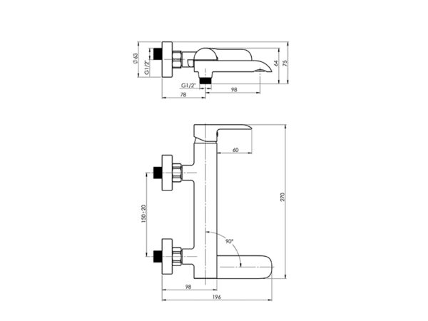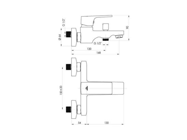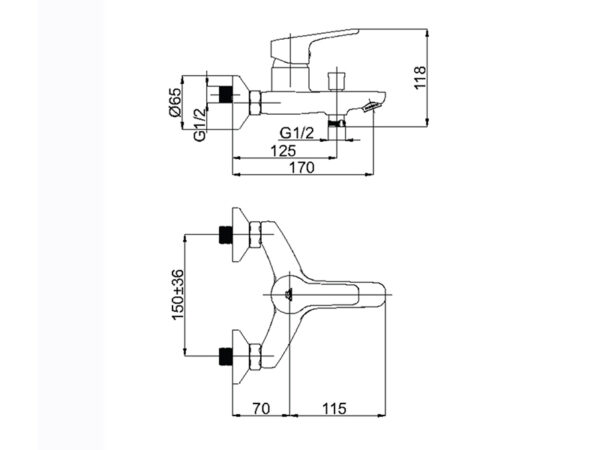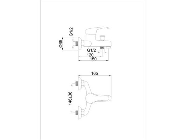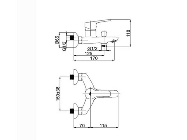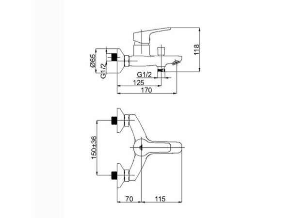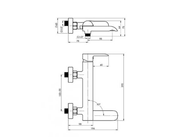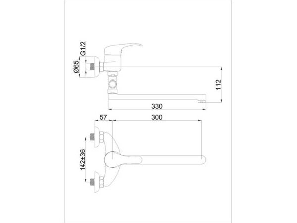 Kylpyammeen sekoitin Rubineta UNO-12/C, jossa on 30 cm:n juoksuputki.