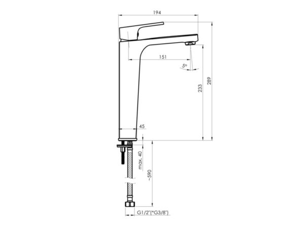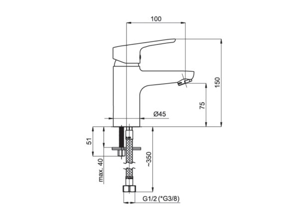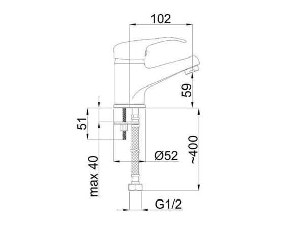 Pesualtaan sekoittaja Rubineta UNO-18, jossa on jäykkä juoksuputki.