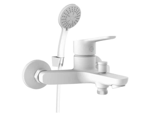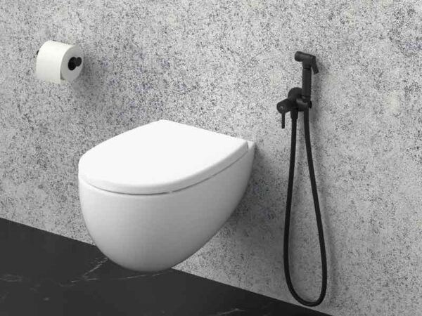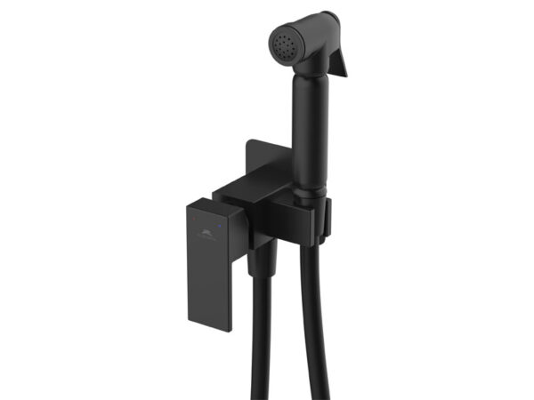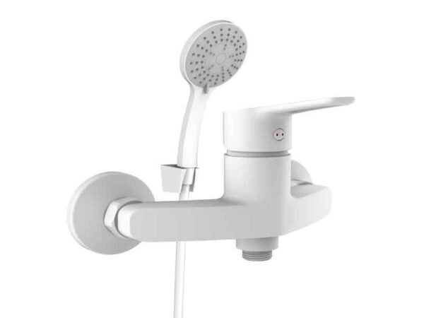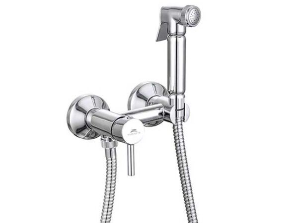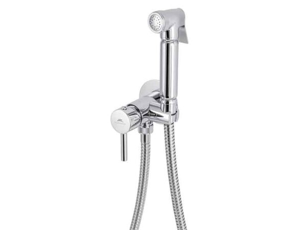 Pesuallassekoitin Rubineta UNO-17, jossa on jäykkä juoksuputki, bideesuihkulla.