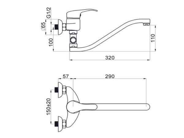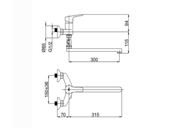 kylpyhuonesekoitin Rubineta P-12/C STAR 30cm juoksuputkella.