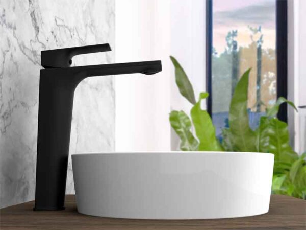 Pesualtaan sekoittaja Rubineta UNO-19, jossa on siirrettävä juoksuputki.