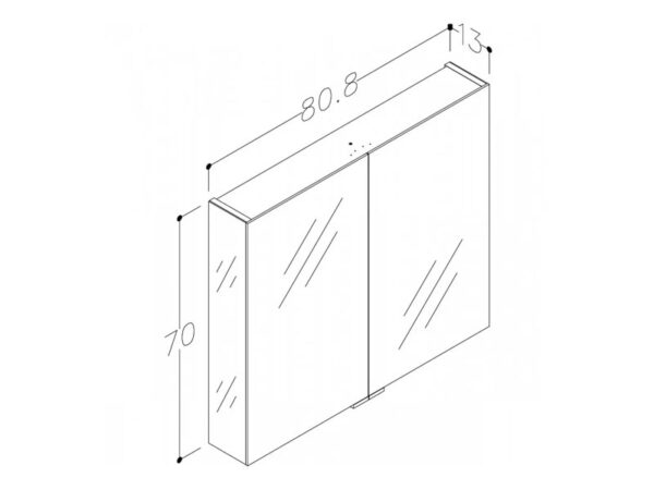 Peilikaappi KAME LED-peilillä ovissa ja sivuilla 80,8x70cm.