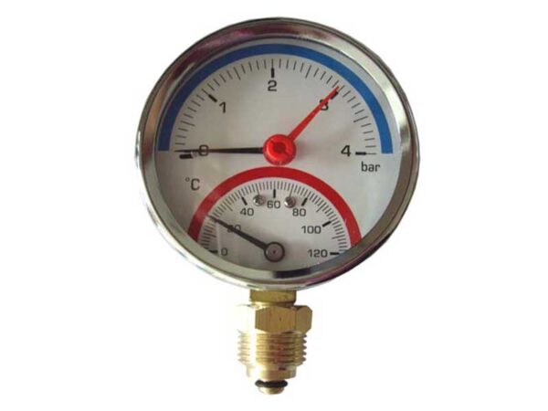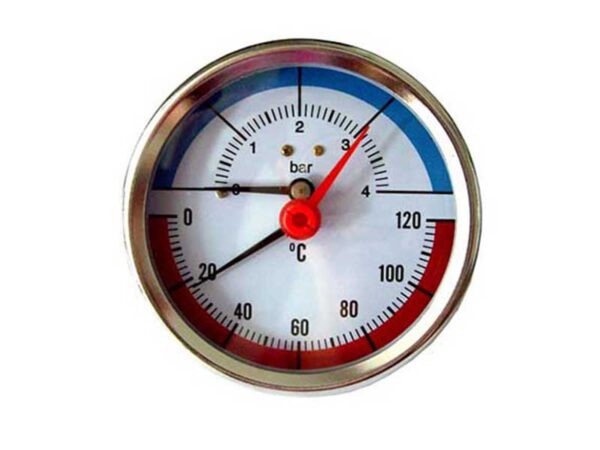 lämpömanometri Ø 80mm, 0- 120°C, 0- 4 bar, 1/2″ takaliitäntä