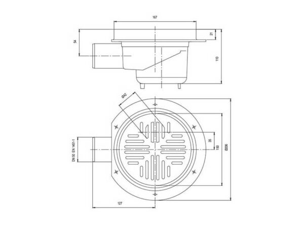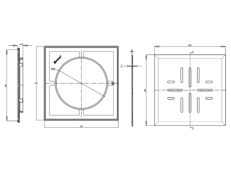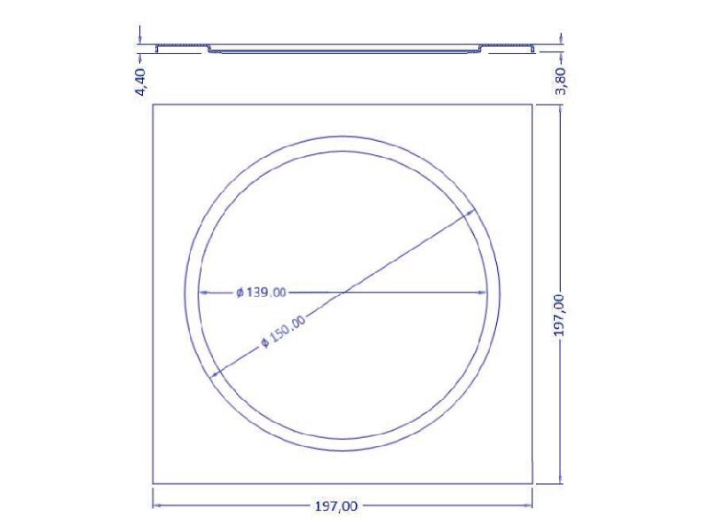 Kaivonkansi ruostumaton 197x 197mm, 32mm reikä.