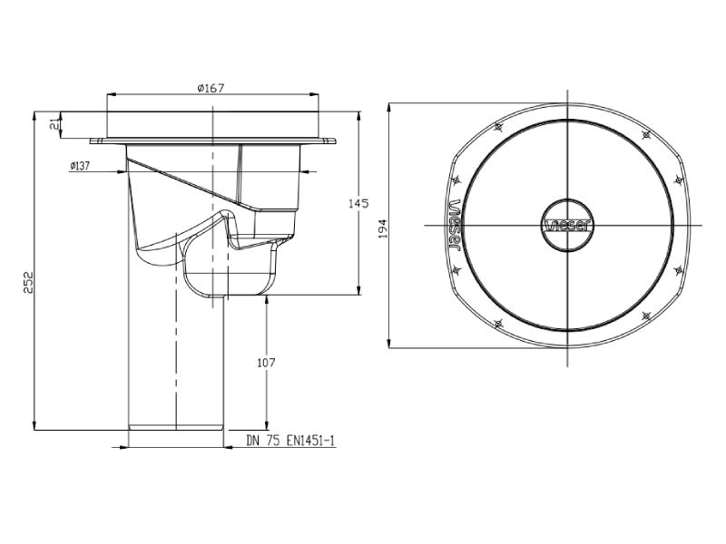 Vesilukko Vieser Classic ruostumaton teräs AISI304 160x160mm 51254