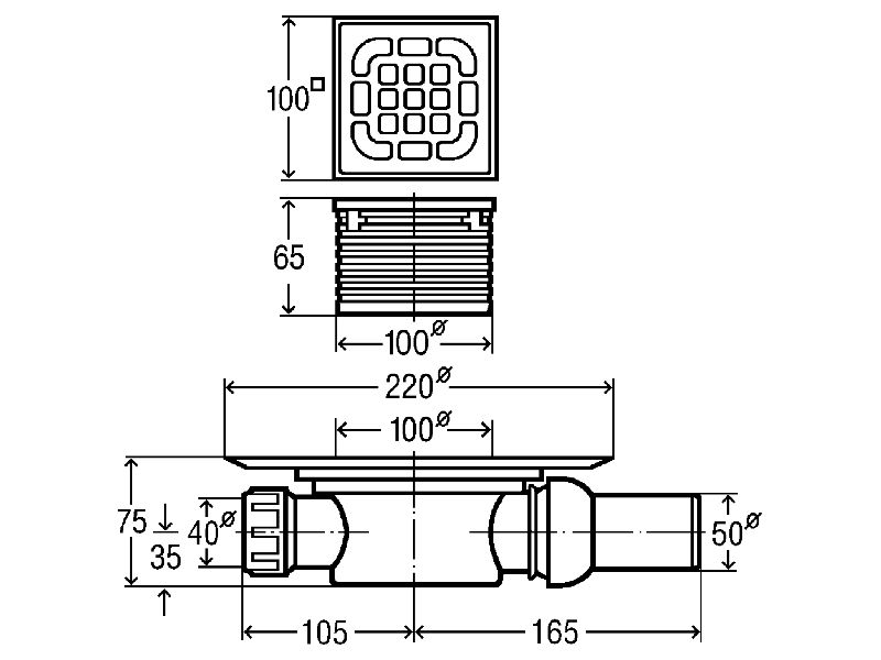 ruostumattomasta teräksestä valmistettu vesilukko 197x197mm matta