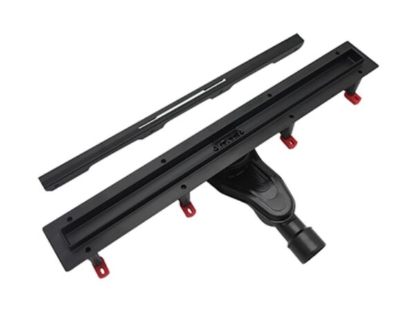 Linjalattiakaivo BLACK GLASS mustalla lasilla ja kuivasulku 700×70 lattiasta seinään NLWGB-7