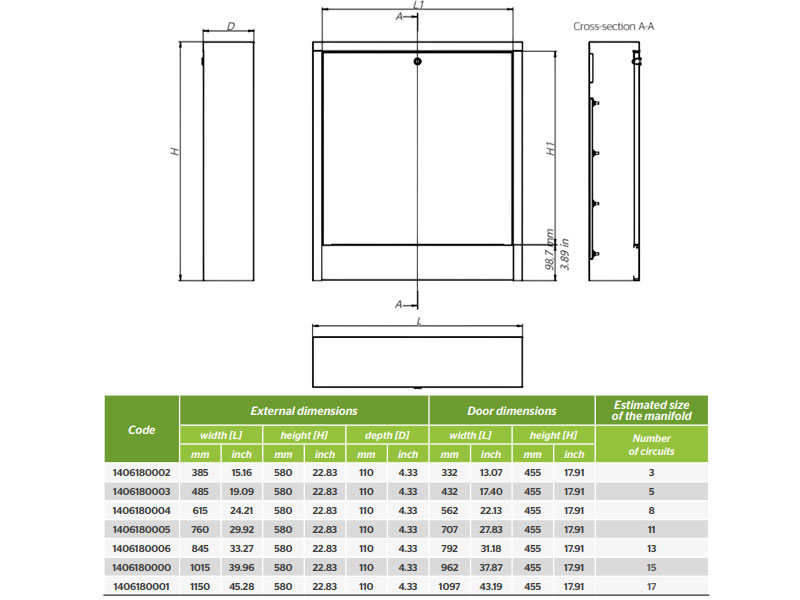 KAN-therm SNE-6 lattialämmityskaapin ulkoinen 1150 x 580 x 110 mm 17-piirin keräimelle