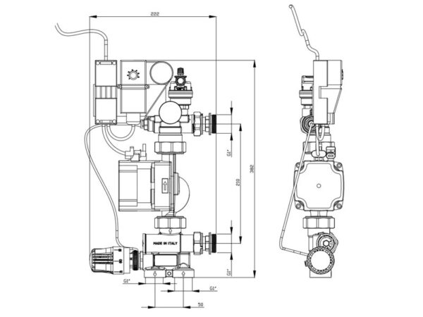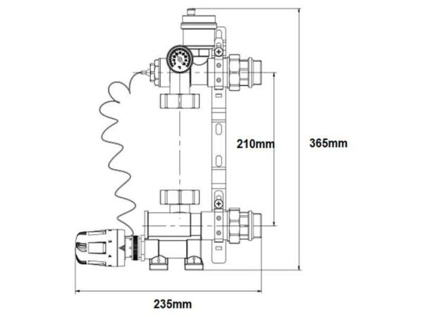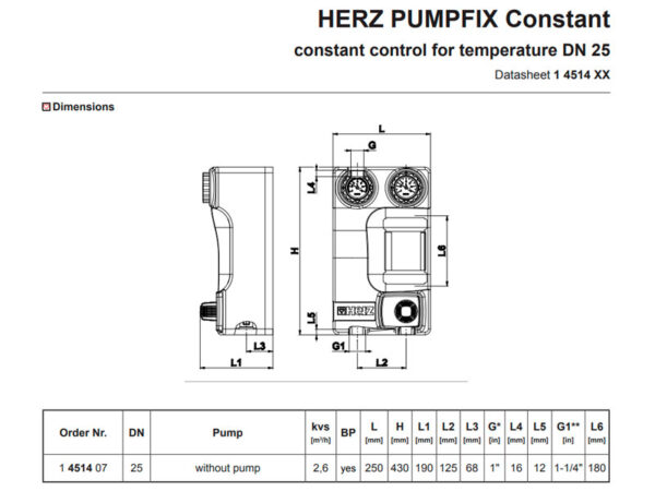 Pumppuryhmä lattialämmityskanavaan Herz PUMPFIX termoparilla DN25 Kvs-4 m³/h.