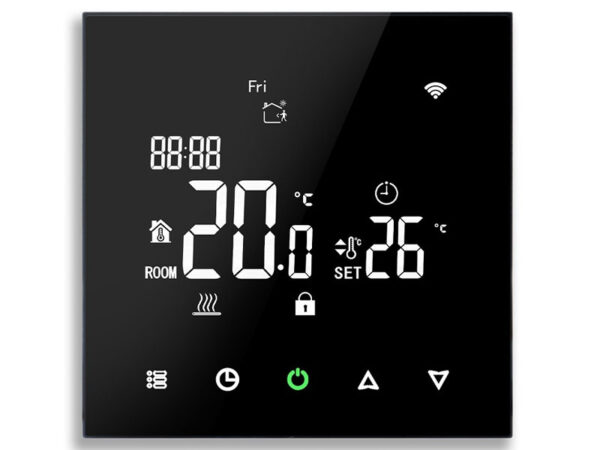 SS210WG-BK digitaalinen musta huonetermostaatti kosketusnäytöllä ja Wi-Fi-yhteydellä