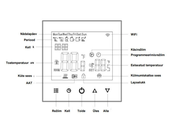 SS210WG digitaalinen huonetermostaatti kosketusnäytöllä ja WiFi-yhteydellä