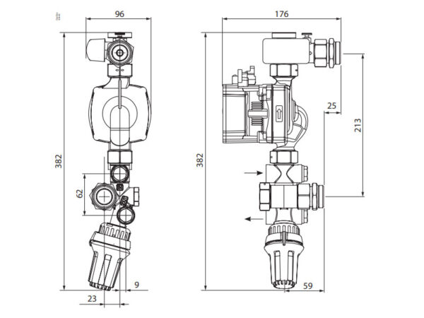 Pumppuryhmä Herz PUMPFIX toimilaitteella ilman pumppua DN25 Kvs-10 m³/h.