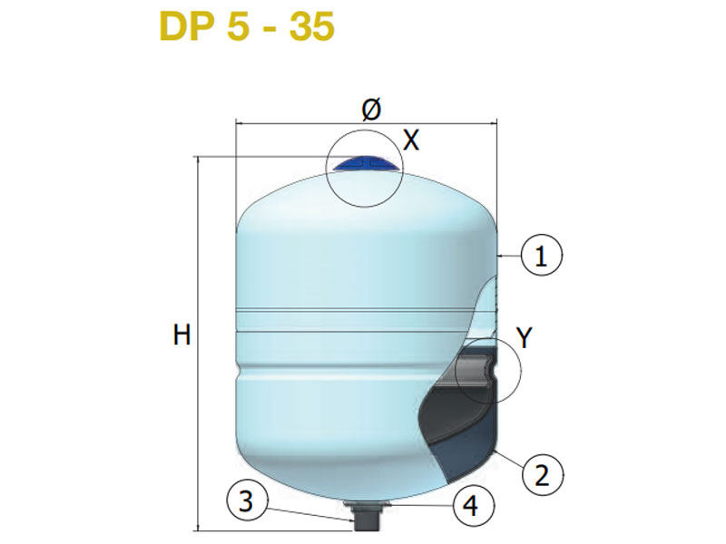 Yleiskäyttöinen paisuntasäiliö käyttö- ja lämmitysvedelle ELBI DP 35L butyylikumikalvolla