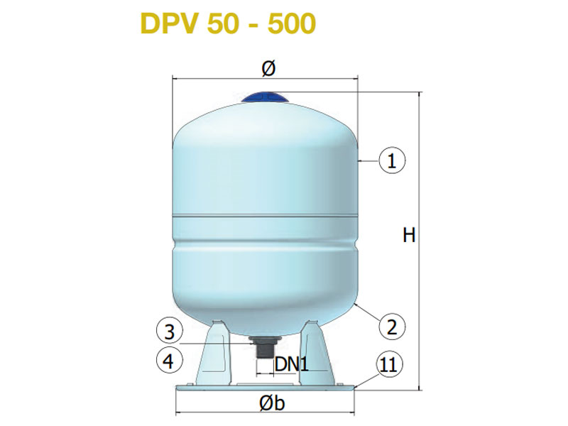 Yleiskäyttöinen paisuntasäiliö käyttö- ja lämmitysvedelle ELBI DP 50L butyylikumikalvolla