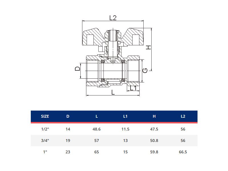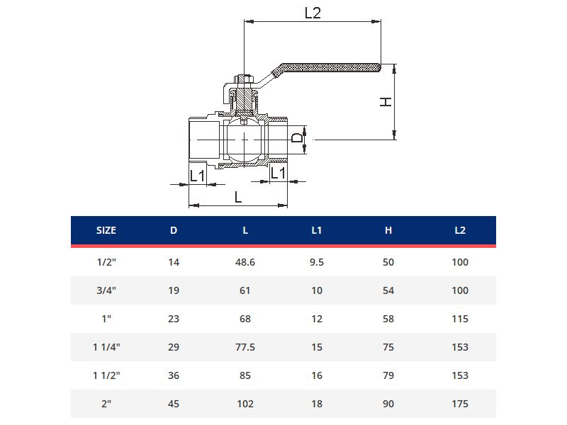 Palloventtiili CW617N PN30 perhosventtiili kahvalla, täysaukkoinen SK/UK 3/4″ tiivisteellä