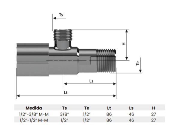 THS kulmahana messinkisellä ulkokierteellä 1/2″ -3/8″ venttiili metallikahvalla.
