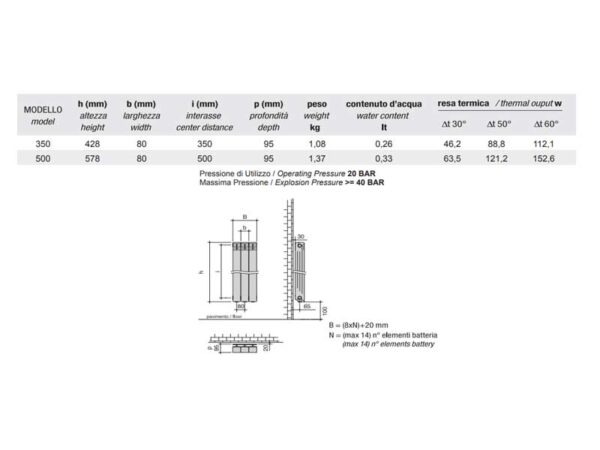 Alumiinipatterin lamelli HELYOS Radiatori2000 Italia 350