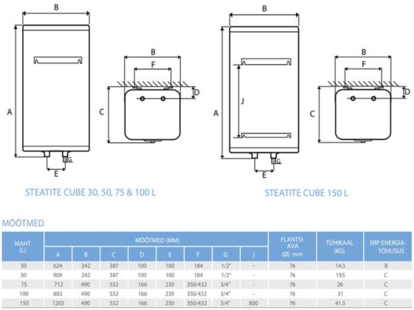 Atlantic Steatite Cube huoltovapaa vedenlämmitin 50l