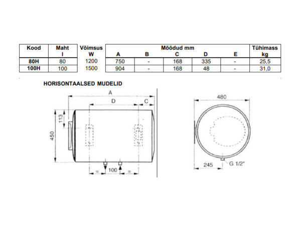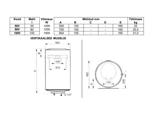 Regent 100L vaakasuora sähköinen vedenlämmitin