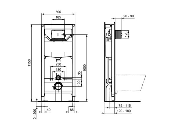 Ideal Standard ProSys 120 -seinäkehyssarja mekaanisella huuhtelupainikkeella.